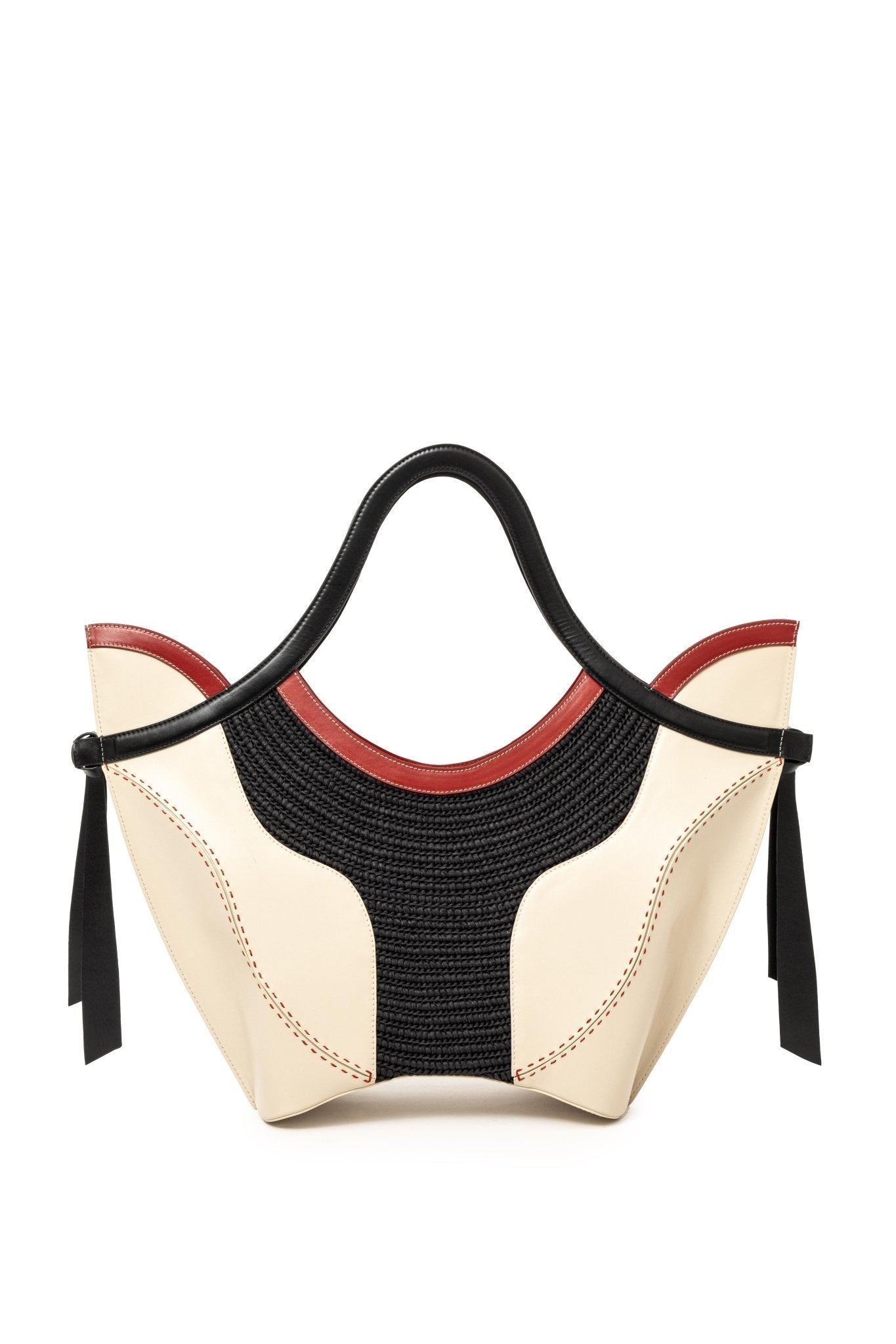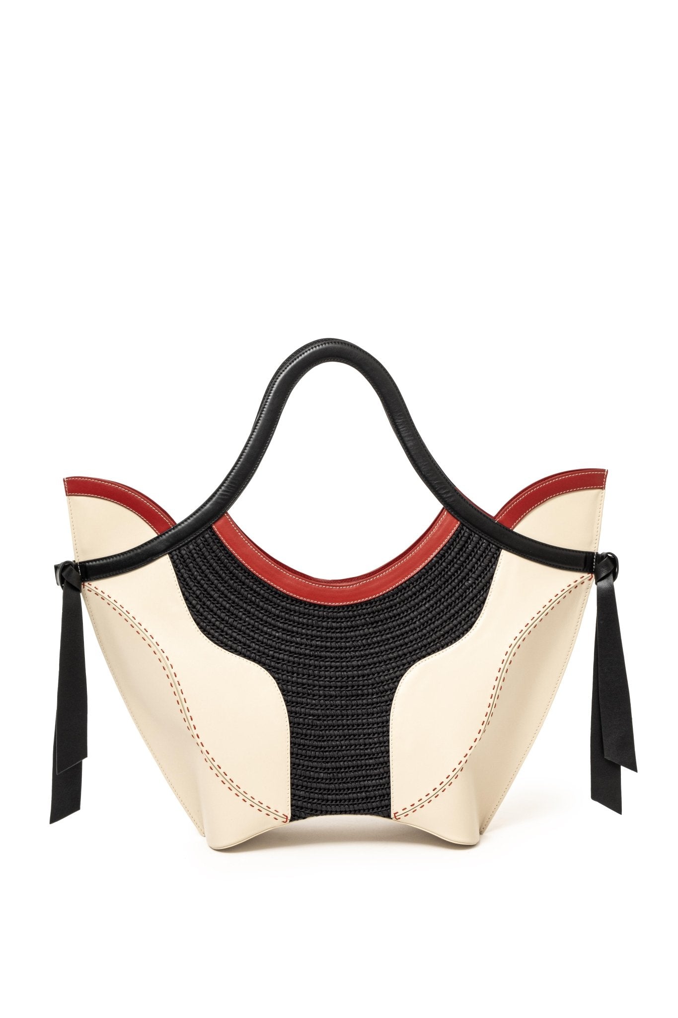 - 100% calf leather and raffia